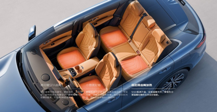 以A级尺寸打造B级空间,2755mm轴距配合84.3%超高得房率,后排头部、肩部、膝部空间同级领先,纯平地板设计让中间乘客腿部活动无阻碍。前排10层棉花糖SPA座椅搭载14点腰背臀腿按摩功能,8种舒缓模式+3档加热/通风,长途驾乘也能缓解疲劳。新增方向盘三档加热与后排座椅加热,-18℃低温环境下15分钟即可升温至舒适区间,老人孩子冬日乘车更温暖。前排双层隔音玻璃搭配62项声学包处理,120km/h时速下车内噪音仅69dB,配合16扬FlymeSound无界之声音响,打造移动影院级静谧视听体验。